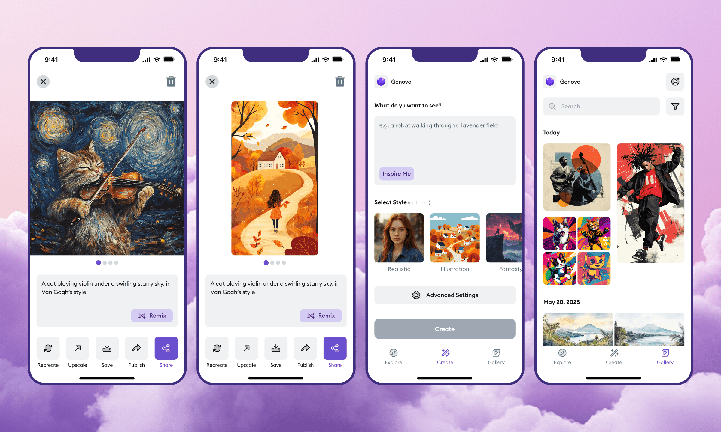 Generate high-quality visuals in seconds with AI-powered creation tools, customizable styles and an intuitive creative workflow.