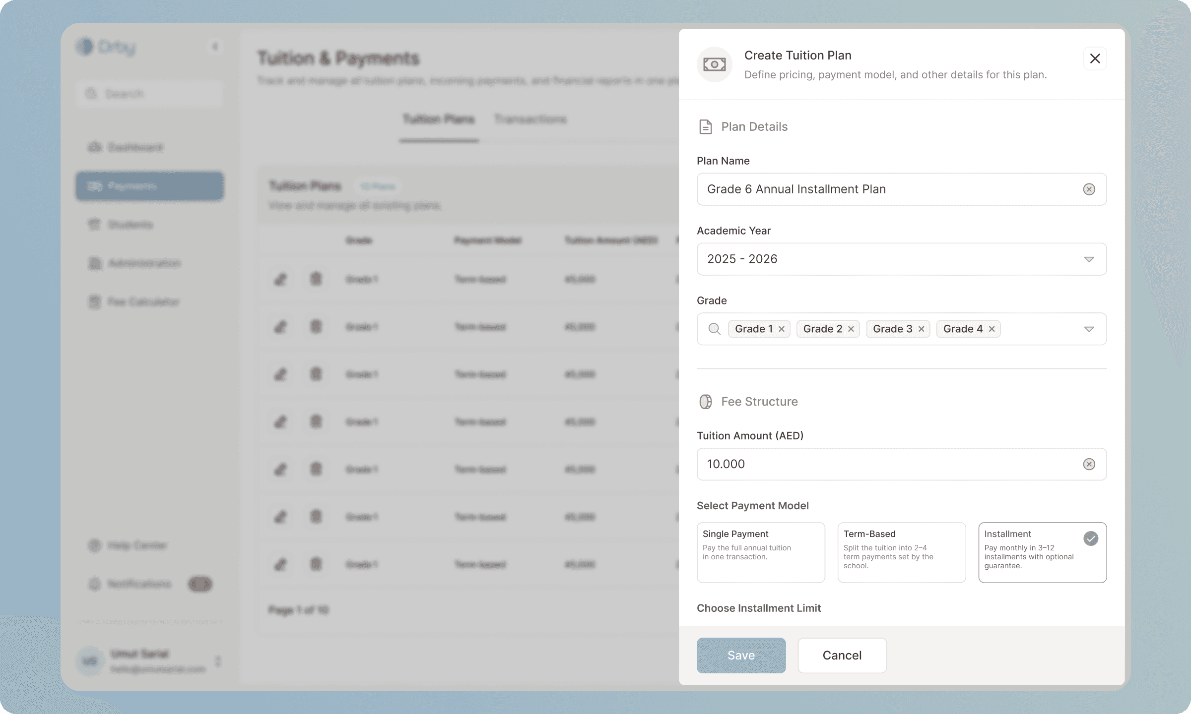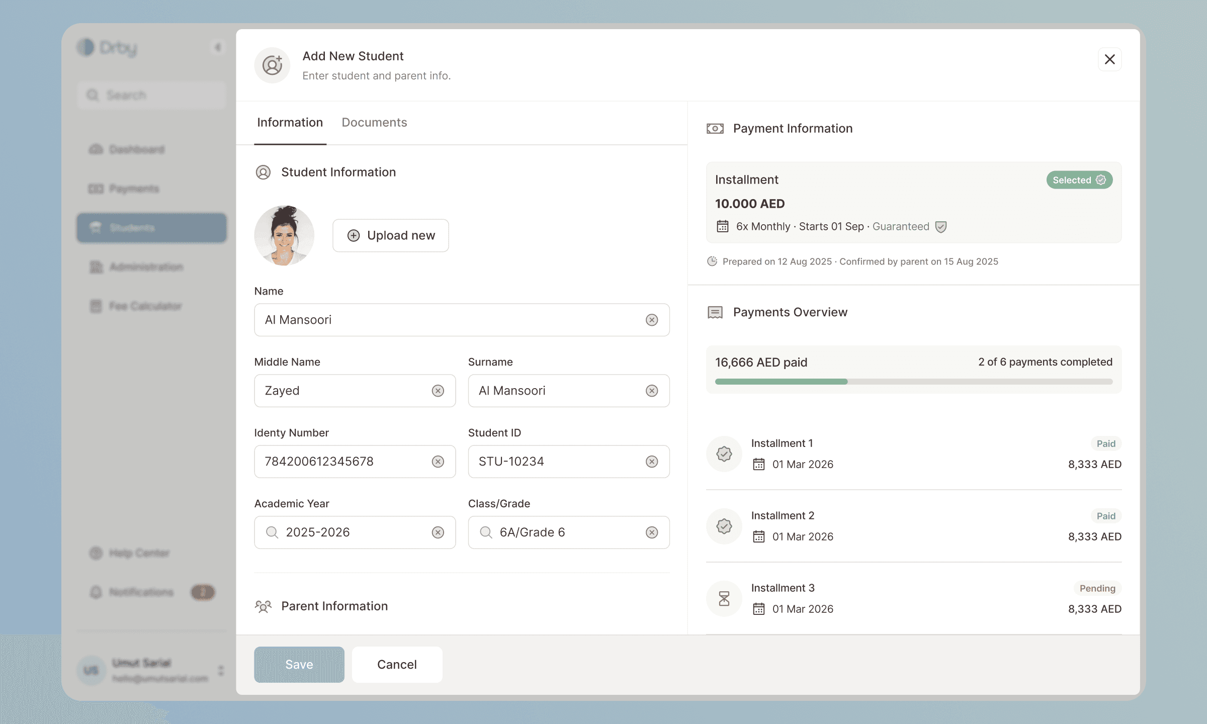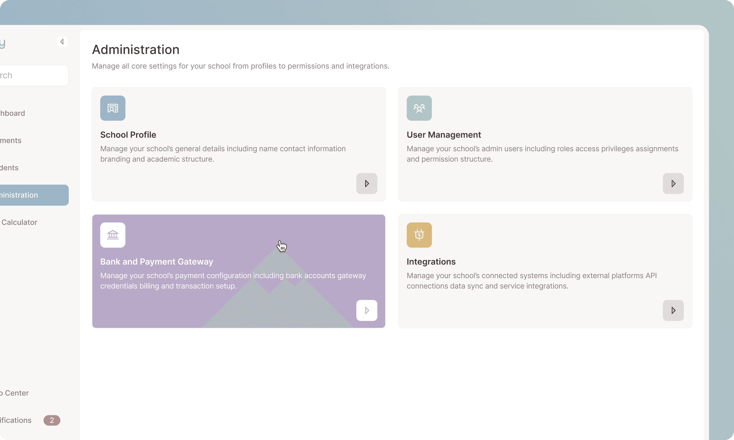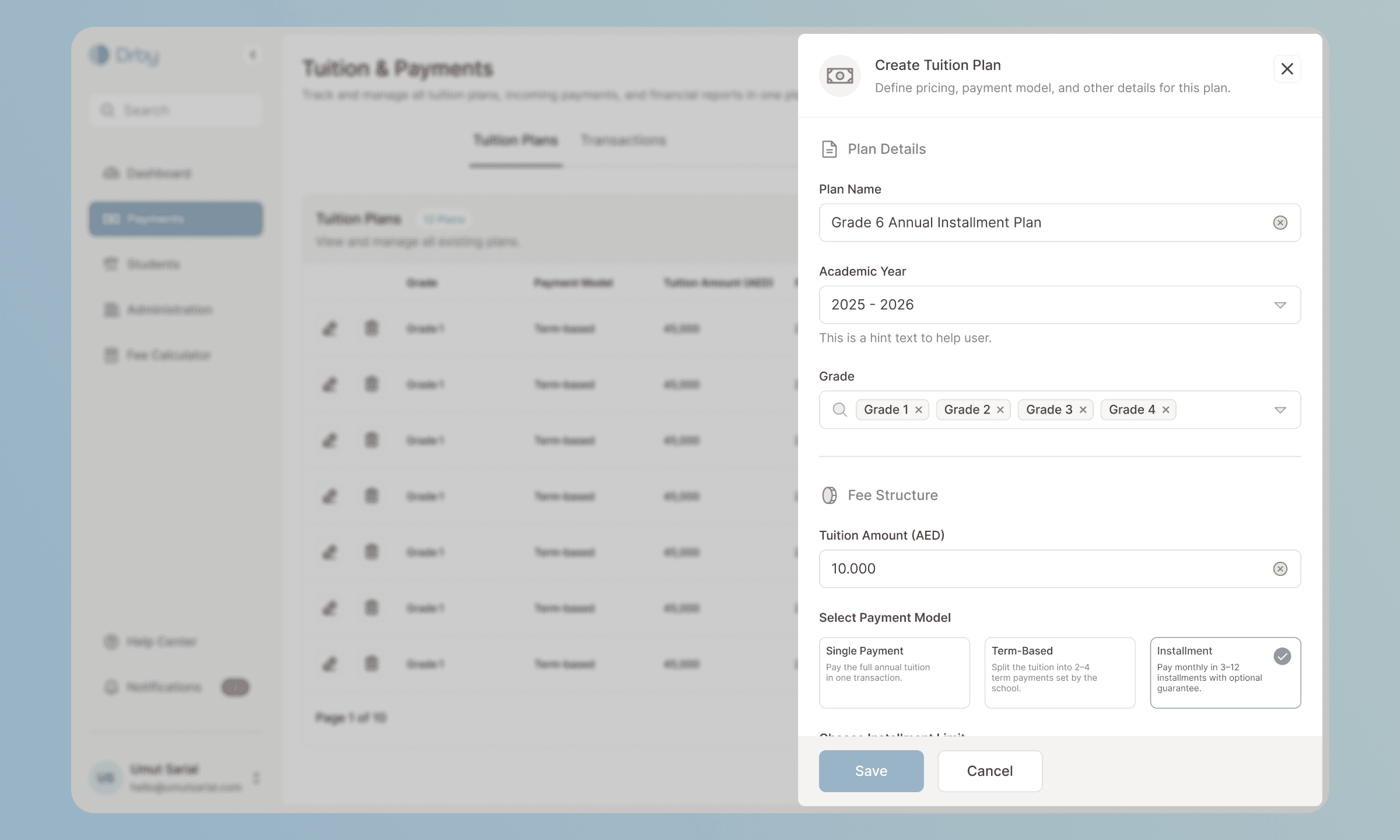 End-to-end product design covering brand, mobile and web for a multi-role education fintech platform used by parents, schools and sponsors.
