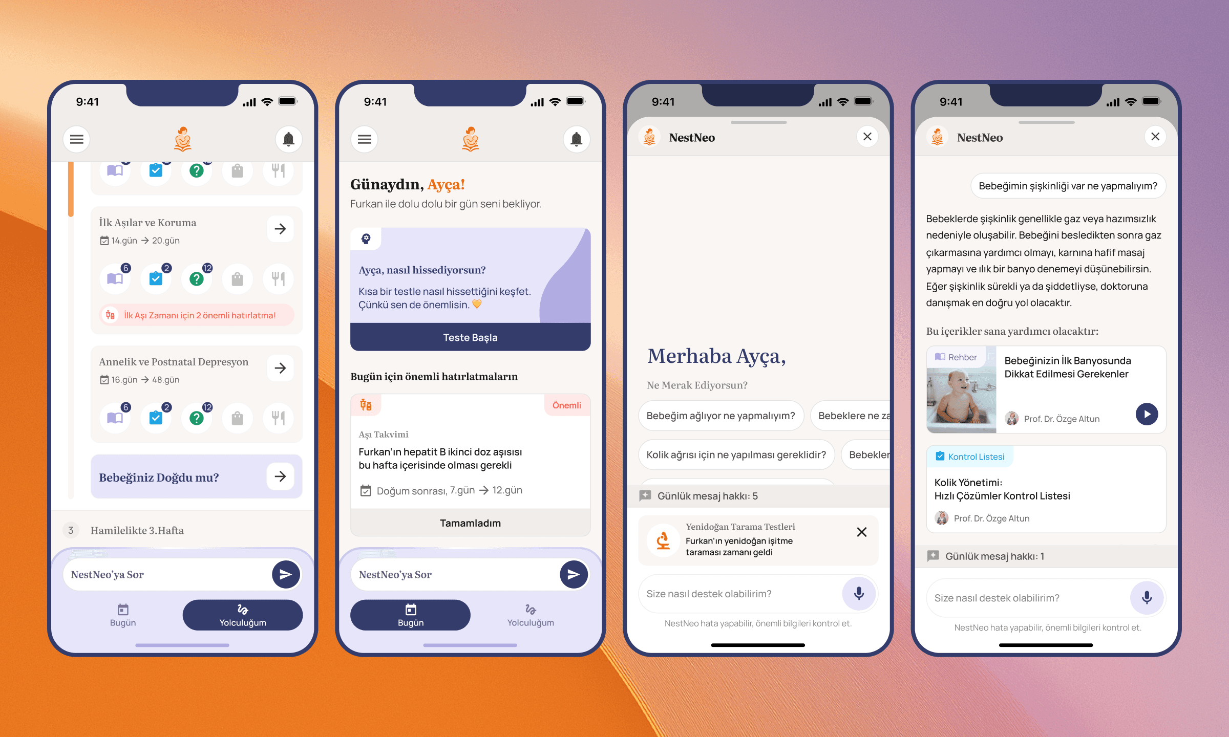 Built the full product experience across UX research, brand and product design for an AI-powered baby care platform.