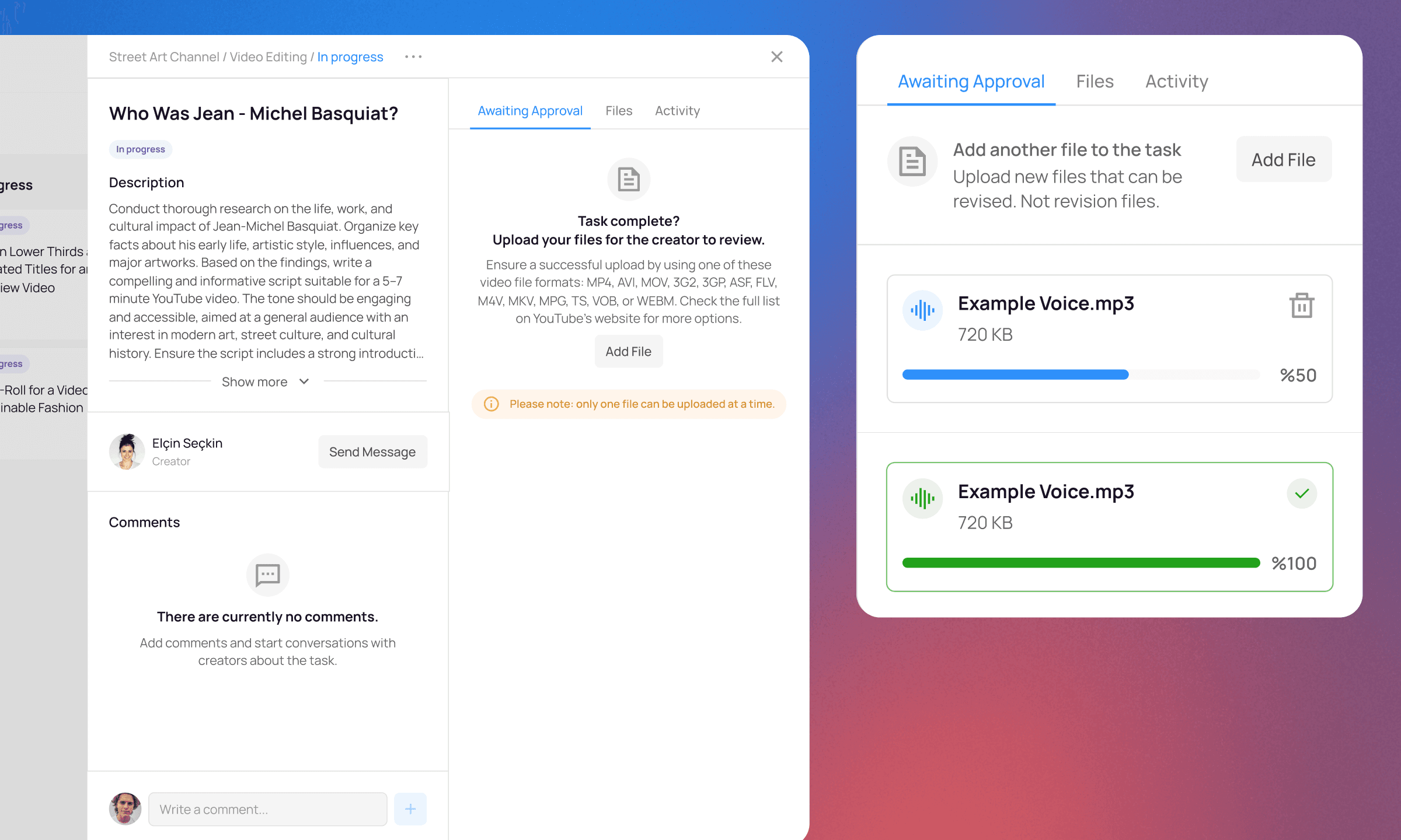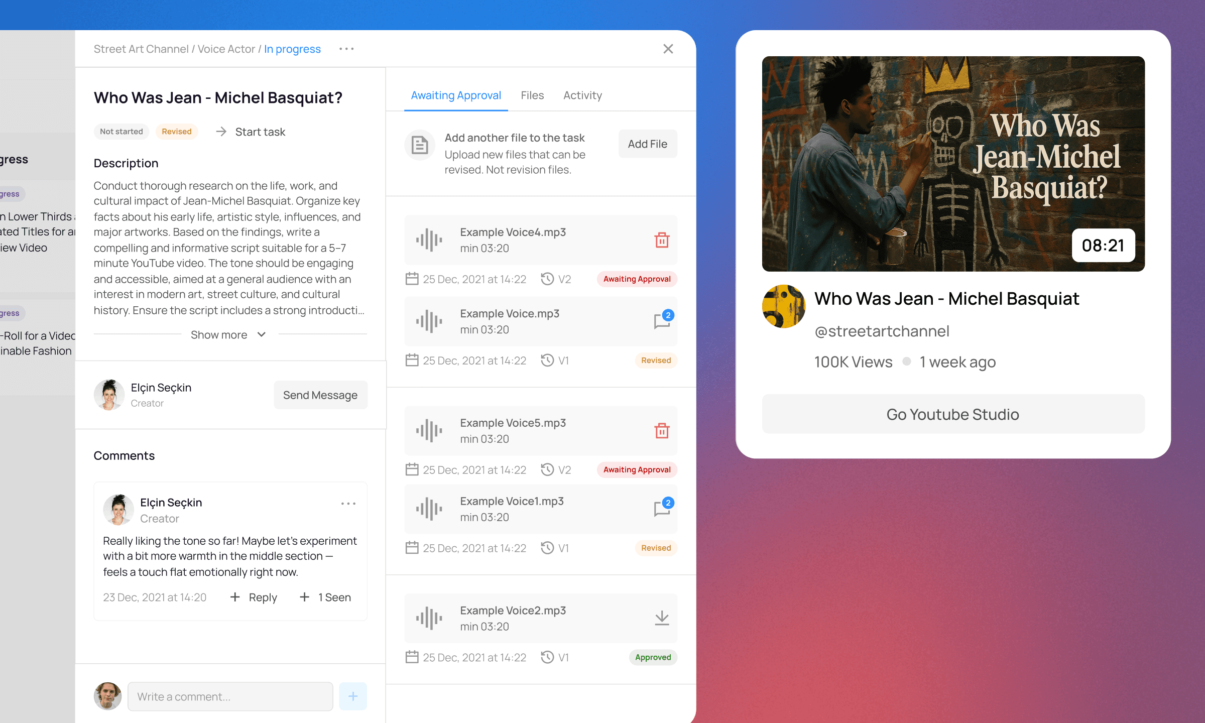 End-to-end workflow tools for managing your YouTube production process in one organized workspace.